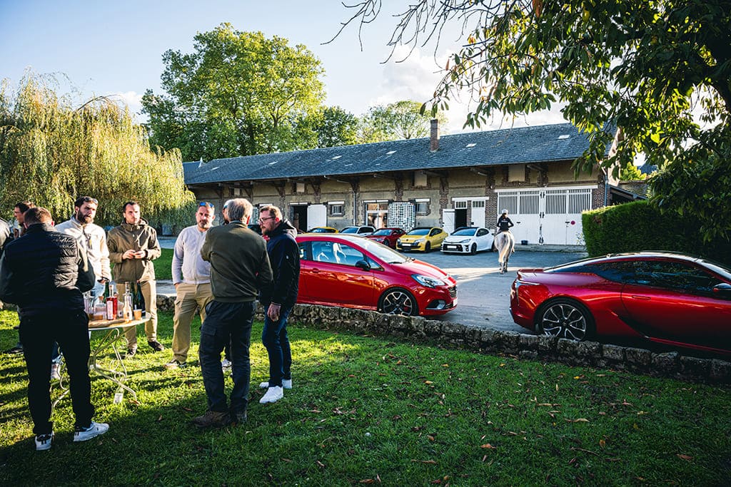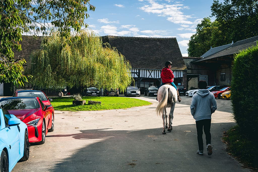 Notre balade s’achève pour une visite privée en Cidrerie, entre chevaux et pommiers en fleur. Cette escale finale permet de découvrir un savoir-faire local authentique lors d’une dégustation privée. Un format condensé qui allie avec précision technicité routière, épicurisme et convivialité entre passionnés.